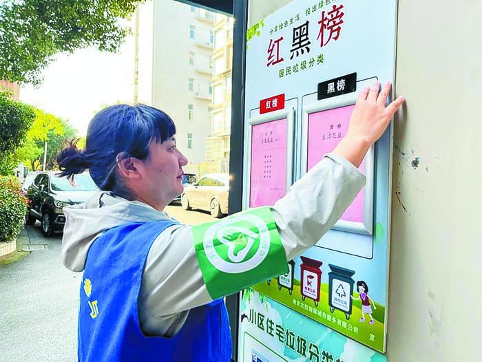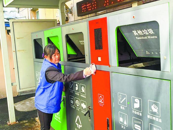 趙以芹是建鄴區(qū)一小區(qū)物業(yè)服務企業(yè)的保潔主管,也是一名垃圾分類志愿者、指導員,小區(qū)里的孩子親切地稱她為“垃圾分類婆婆”。她每天穿梭在小區(qū)收集房亭周邊,早晨上崗的第一件事就是掀起一個個垃圾桶蓋仔細查看,“部分垃圾是指導員下班后投放的,不知道分得好不好,我得抓緊時間檢查一下,否則垃圾累積多了,就更不好分了……”趙以芹說。每當居民來投放垃圾時,她總是習慣性地將垃圾袋打開仔細檢查一遍,若發(fā)現(xiàn)混投,會向居民進行分類示范。久而久之,小區(qū)居民基本能做好生活垃圾分類工作。