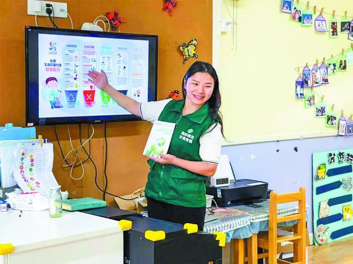 一件舊衣服、一張廢舊紙、一個舊輪胎……這些被扔掉的“垃圾”,在志愿者、雨花臺區(qū)家禾齊修幼兒園老師陳二麗以及孩子們的手中,就會變成一件件小工藝品。陳二麗始終認為,家庭是幼兒生活的第一環(huán)境,對幼兒垃圾分類習慣的養(yǎng)成具有重要作用。為讓家長積極參與到垃圾分類中,她通過晨間談話、家園欄、家委會以及垃圾分類倡議宣誓等活動,激勵家長自主參與到幼兒園垃圾分類工作的策劃與宣傳中。她還通過“21天習慣打卡”引導孩子及家長每日開展垃圾分類行動,從“知道”轉變成“習慣”。