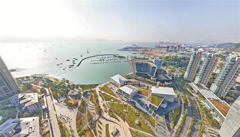 從招商局廣場俯瞰蛇口海上世界藝術中心,通過城市第六立面提升,這里景色秀麗,風光宜人。 (深圳市住房和建設局供圖)
