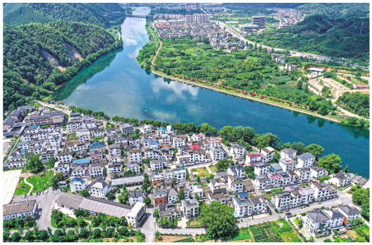 ▲在浙江省衢州市開化縣拍攝的錢塘江源頭河——馬金溪沿岸金星村。當(dāng)?shù)刈畲笙薅鹊乇A袅饔驗┑貫┝?,將“固?綠岸+慢道”結(jié)合建設(shè),帶動鄉(xiāng)村旅游和民宿經(jīng)濟大力發(fā)展(2023年8月2日攝)。新華社記者 黃宗治 攝