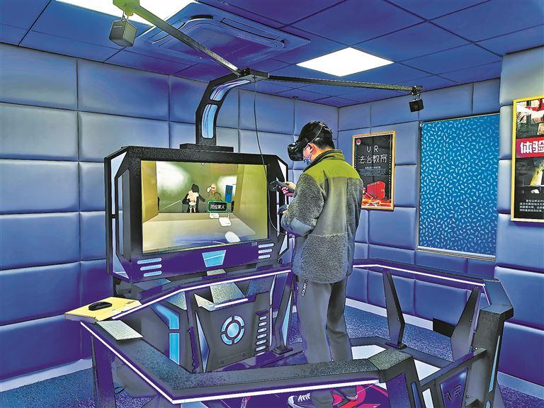 在湖里區(qū),信息化引領(lǐng)形成線上監(jiān)管體系閉環(huán),并廣泛應(yīng)用于排查、矯治、預(yù)防、教育等工作。圖為社區(qū)矯正對象接受VR法治教育。