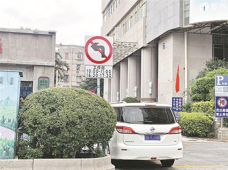 老年大學斗西路車庫出口增設限時段禁止左轉標識。