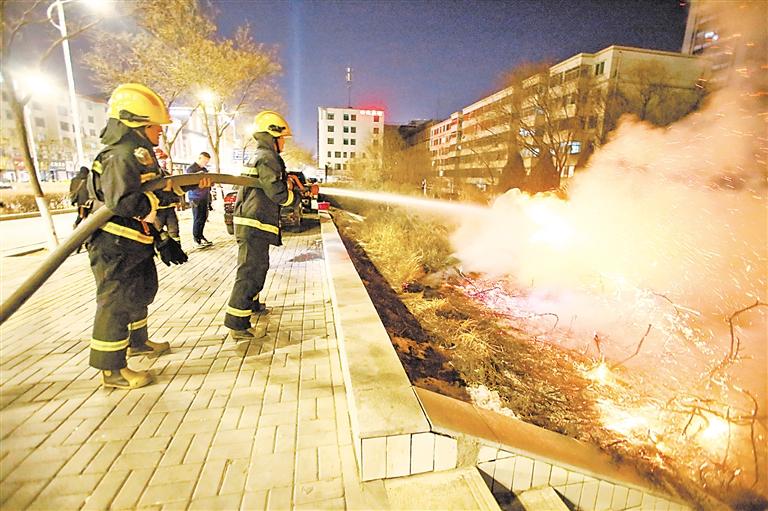 凌晨2時,記者走出了滿春消防救援站。此時喧鬧的城市逐漸安靜下來,夜空中偶爾有禮花升空,街邊不時有鞭炮炸響。然而,記者離開消防站沒幾步路,消防站又傳來警鈴聲。接著,消防車?yán)瘓蠛魢[而出,沖向夜色中。(記者 蘇克龍)