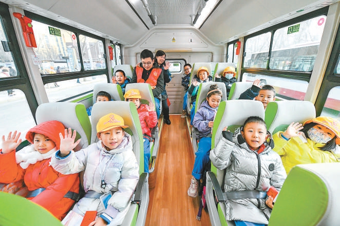 通學(xué)195路是石景山區(qū)首批開通的通學(xué)線路之一。臨近發(fā)車,“小豆包”在家長陪伴下陸續(xù)抵達(dá)。“今天知道要坐通學(xué)公交,非常興奮,一大早就爬起來,自己穿衣服、刷牙。孩子覺得自己能獨(dú)立坐公交車,像個小大人了。”家長史姍姍說,她家就住對面小區(qū),通學(xué)車方便又安全,價格也實惠。