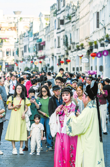 市民游客在騎樓老街豐富多彩的節(jié)慶活動中,領略海口的文化特色和民俗風情,打卡這個不容錯過的旅游地標。 記者 康登淋 攝