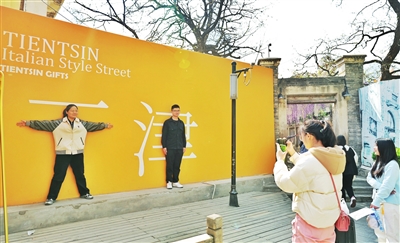 河北區(qū)意式風情區(qū)打造沉浸式場景,游客在City Walk中定格美好。 記者 吳迪 攝
