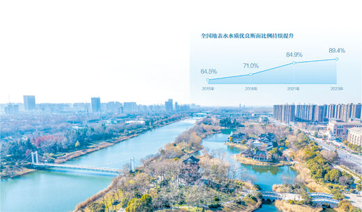 2023年,全國地表水水質(zhì)優(yōu)良斷面比例達(dá)到89.4%,比2012年提高27.8個百分點