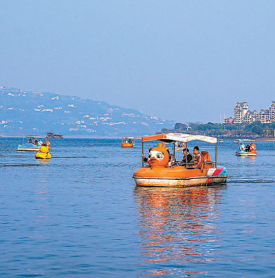 重慶市開州區(qū)漢豐湖景區(qū)景美如畫,游客在觀光游玩。王曉宇 攝(人民視覺)