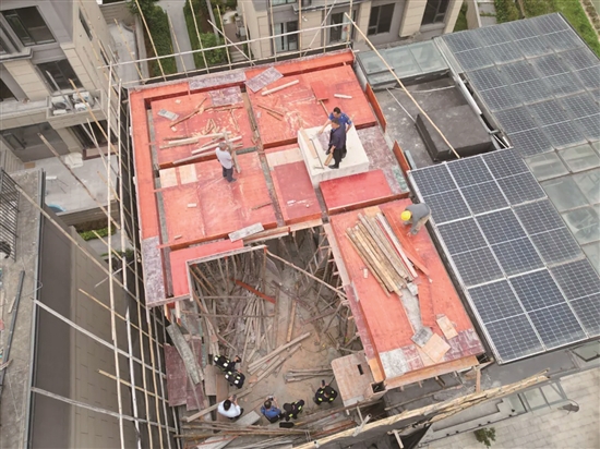 4月1日,中堂城管分局通過(guò)無(wú)人機(jī)巡查發(fā)現(xiàn)斗朗社區(qū)金茂淺水灣別墅區(qū)內(nèi)有一處違法加建行為,現(xiàn)場(chǎng)正搭建模板。次日上午,中堂城管分局對(duì)違法加建部分采取快速拆除措施,拆除面積60平方米。4月15日,中堂鎮(zhèn)召開(kāi)違建治理拆違現(xiàn)場(chǎng)會(huì),對(duì)一宗航飛巡查發(fā)現(xiàn)的面積300平方米的違法搭建建筑物進(jìn)行拆除。