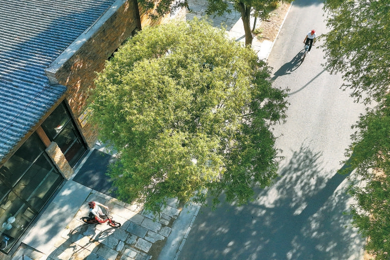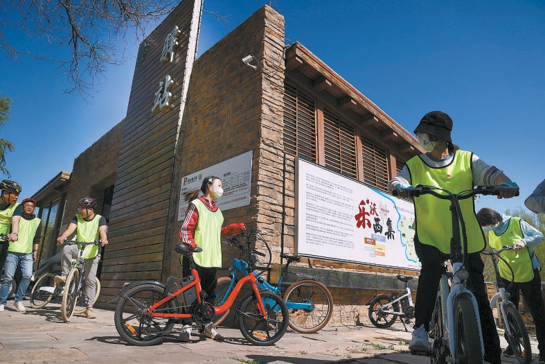 騎行活動(dòng)集合始發(fā)的騎行驛站,距離運(yùn)河不到500米,是由過去廢棄的公共衛(wèi)生間改造而成,呈現(xiàn)出質(zhì)樸大氣的工業(yè)風(fēng)格,令人眼前一亮。驛站內(nèi),游客不僅可以享受熱水、咖啡、簡(jiǎn)餐、手機(jī)充電、騎行設(shè)備維修等服務(wù),還可通過圖文展板、實(shí)物展陳、多媒體影像等方式,了解西集鎮(zhèn)深厚的文化底蘊(yùn)和特色產(chǎn)業(yè)。“我們圍繞‘健康+旅游’打造了兩條生態(tài)騎行線路,自3月中旬以來,每周都組織騎行活動(dòng),帶領(lǐng)游客打卡精品民宿和特色村莊,到種植園采摘農(nóng)產(chǎn)品,活動(dòng)收獲了大家的一致好評(píng)?!斌A站運(yùn)營(yíng)方相關(guān)負(fù)責(zé)人李龍海說。