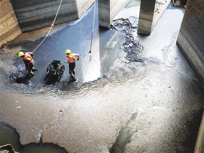 相對于道路上的管道清淤,泵房內(nèi)的清淤工作要難上許多:工作人員需要下到近10米深、黑暗潮濕的空間中進行人工清淤。