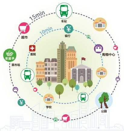 想象一下,一天的生活這樣規(guī)劃是否很幸福——早上出門,在家附近的早餐店吃頓熱乎乎的餛飩,再步行15分鐘去上學或上班。居住的小區(qū)周圍,菜市場、健身房、口袋公園、超市、醫(yī)院等生活配套設施一應俱全。