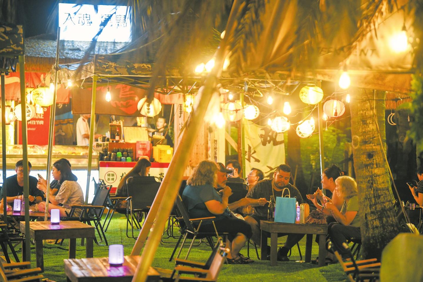 傍晚時(shí)分,市民游客在FUNBAY自在灣商業(yè)街區(qū)享受美食。記者 康登淋 攝