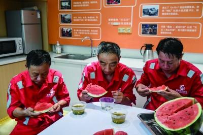 “來,今天吃哈密瓜。”在位于棲霞區(qū)的南京博潤環(huán)境公司仙林項目部安康驛站內(nèi),負(fù)責(zé)人汪洋切了滿滿一大盆哈密瓜張羅著在此歇腳的環(huán)衛(wèi)工人。記者在現(xiàn)場看到,這一新近打造的安康驛站內(nèi),空調(diào)、冰箱、微波爐等配套齊全,一邊的桌子上不僅擺放著清涼油、藿香正氣水、風(fēng)油精、人丹等防暑降溫用品,還配備著礦泉水、鹽汽水等飲品,“不僅備齊該有的物品,這里的服務(wù)時間還延長至晚上9時后?!?/span>汪洋介紹。