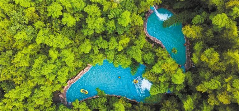 7月11日,浙江省湖州市吳興區(qū)紅里山村,游客在體驗(yàn)漂流項(xiàng)目。近年來,該區(qū)積極推進(jìn)礦山生態(tài)修復(fù),依托現(xiàn)有林地、草坪、礦坑等自然資源,打造集親水體驗(yàn)、山地越野、拓展研學(xué)于一體的生態(tài)旅游綜合體。何偉衛(wèi) 攝(中經(jīng)視覺)
