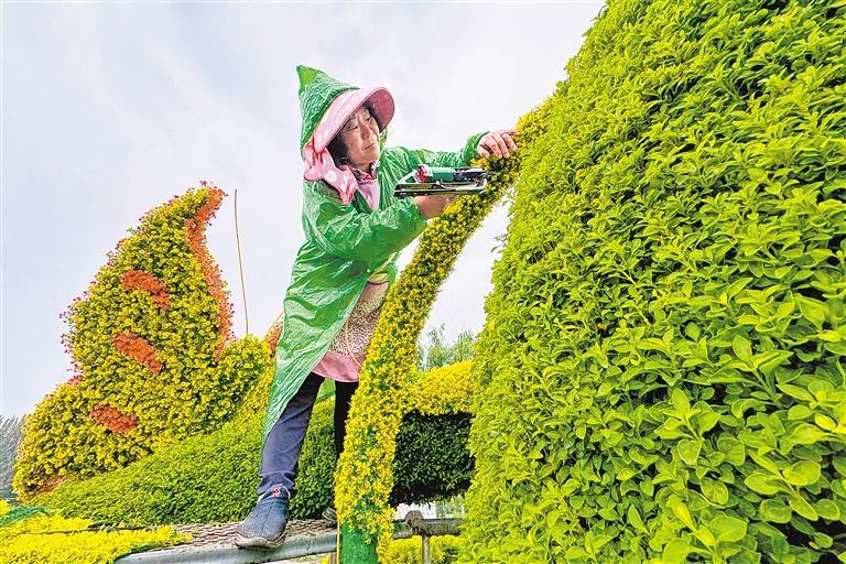 9月9日,銀川市綠化養(yǎng)護(hù)中心花卉基地,工作人員制作一座座造型獨特的綠雕。中秋、國慶“雙節(jié)”將至,銀川市園林部門將在城市主要干道、廣場公園展擺120萬盆鮮花,這一抹抹亮色將為城市帶來無限活力和濃郁的節(jié)日氛圍。 記者 馬楠 王洋 攝