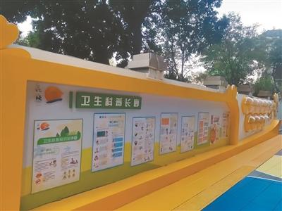 其中,新隆沙社區(qū)長者和兒童居民較多,社區(qū)內(nèi)開放式小廣場常有居民帶小朋友散步玩樂。在本輪改造中,新隆沙社區(qū)特別加入“健康社區(qū)”和“友好兒童”主題。社區(qū)利用轄內(nèi)小廣場側(cè)邊的公用圍墻,打造成健康知識(shí)科普長廊,以期刊的形式定期更新,內(nèi)容涵蓋公共衛(wèi)生、心理健康、應(yīng)急救助、法律法規(guī)等方面,擴(kuò)大宣傳普及面。一方面合理運(yùn)用原閑置空間開展科普宣傳,另一方面實(shí)現(xiàn)了社區(qū)容貌提升。(李元源)