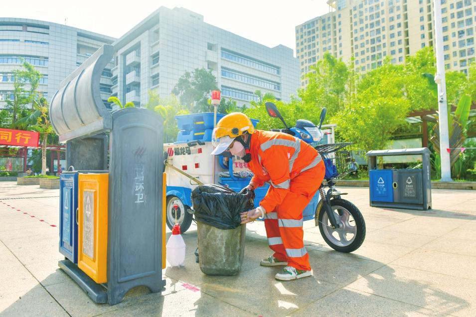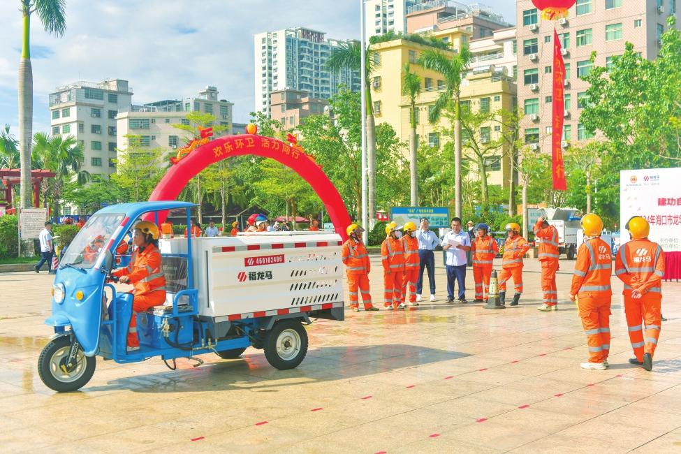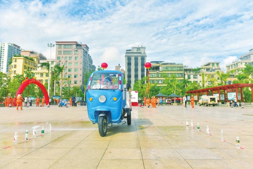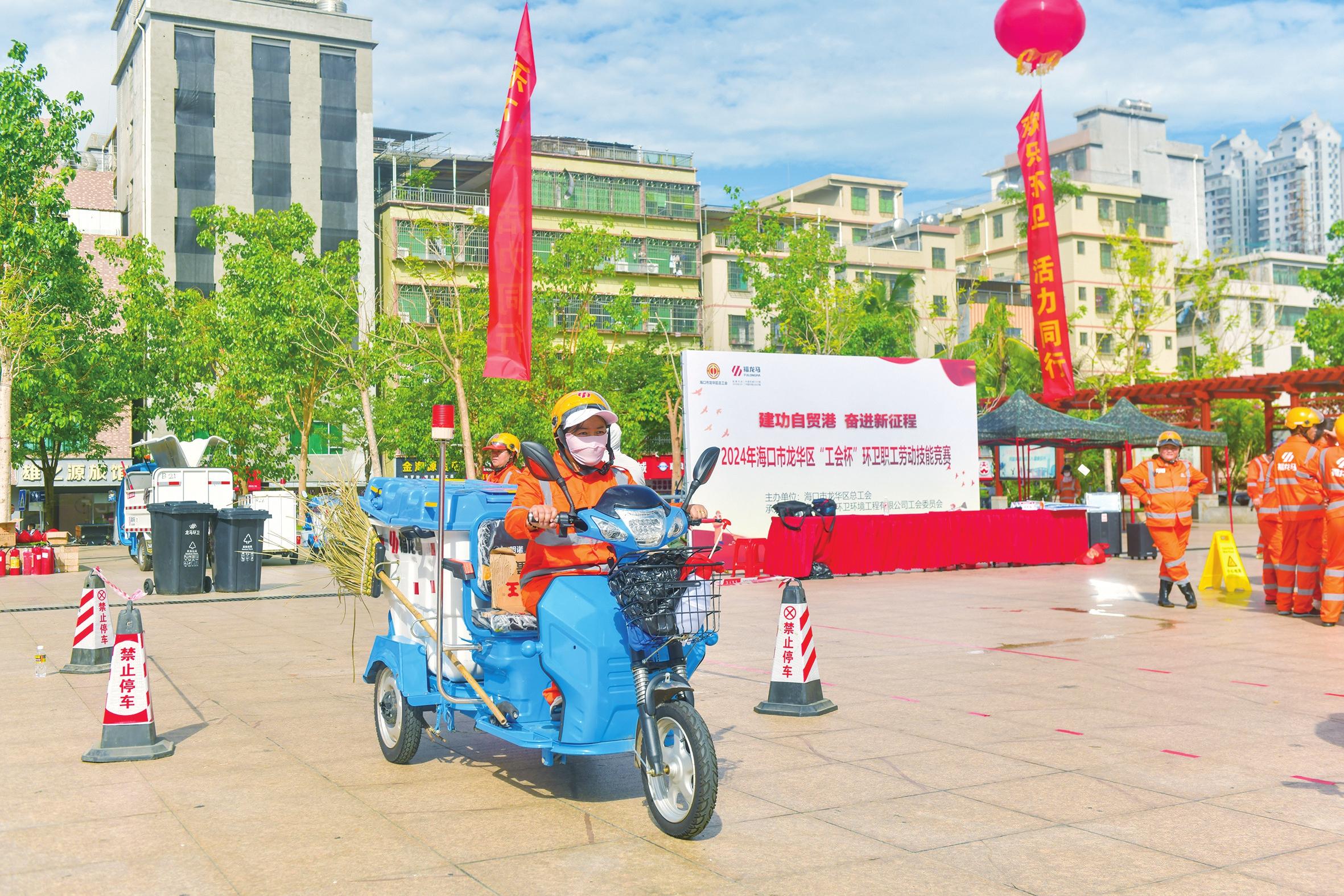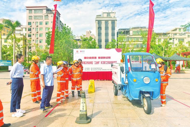 10月18日,??谑旋埲A區(qū)雙創(chuàng)廣場上熱鬧非凡,福龍馬??诠窘倜h(huán)衛(wèi)工人在進行技能比賽。他們激情四射,將自己最好的狀態(tài)、精湛的技術(shù)展現(xiàn),贏得了陣陣歡呼。