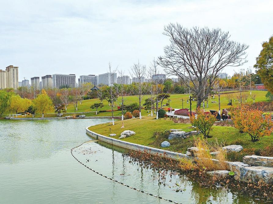 近日,太原雙塔寺景區(qū)內(nèi),各類(lèi)樹(shù)木與清澈的湖水、古色古香的仿古建筑相映成趣。游客漫步其間,仿佛置身于一幅色彩斑斕的畫(huà)卷之中,沉浸式感受生態(tài)之美與自然之趣。楊家煒 攝