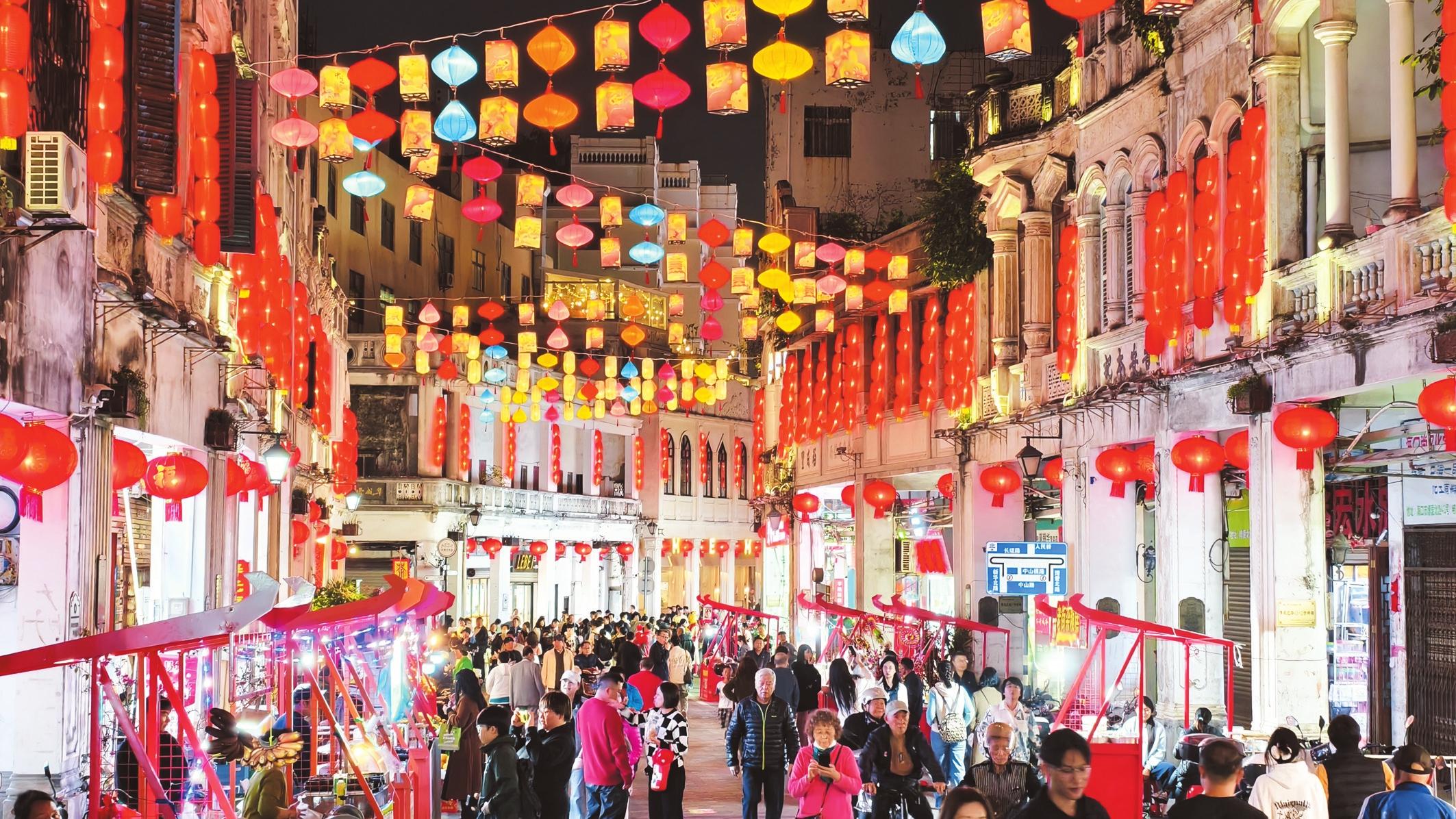 1月4日晚,隨著夜幕降臨,??隍T樓老街上一盞盞燈籠被點亮,映照在古老建筑上,光影交織,如夢如幻。市民游客穿梭其中,歡聲笑語不斷,讓老街煥發(fā)出獨特魅力。 記者 康登淋 攝