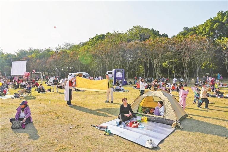 春節(jié)假期,市民在蓮花山公園露營,享受陽光。記者 嚴(yán)文婷 攝