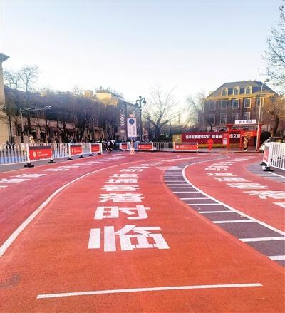“年輕人偏愛網(wǎng)約車,又是出游的主要群體。以前每逢節(jié)假日,總會(huì)出現(xiàn)車輛擁堵、秩序混亂的場(chǎng)景,尤其是交通管制時(shí),河北路與成都道交口處常常因?yàn)闋I運(yùn)車的隨意停靠而陷入癱瘓。我們多次調(diào)研,研究出設(shè)置臨時(shí)落客區(qū)的舉措?!敝ш?duì)負(fù)責(zé)人介紹,該區(qū)域共設(shè)置了3條臨時(shí)落客通道,地面刷著紅漆,印有“臨時(shí)落客通道,即停即走”的字樣,車道用白色圍欄隔開,車輛互不影響,圍欄上也掛有提示牌“車道擁堵,請(qǐng)司機(jī)師傅勿在此長時(shí)間停留”,路邊立有一個(gè)崗?fù)?,這是游客上下車等待區(qū)域。