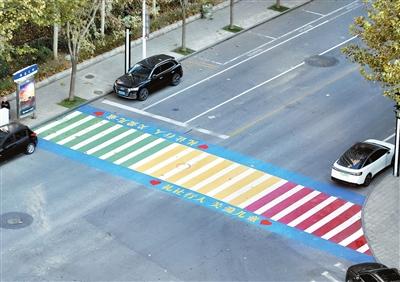 兒童對(duì)色彩比較敏感,喜歡五顏六色的世界。在和平區(qū)南市大街附近,幾個(gè)路口的斑馬線不再是單調(diào)的白色,而是五顏六色。這些斑馬線的設(shè)置專為吸引兒童的注意,讓他們養(yǎng)成“行人過馬路必須走斑馬線”的好習(xí)慣。