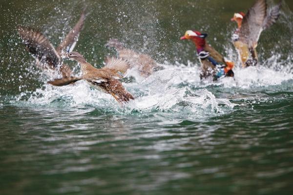 2月9日,桃源縣王家灣水庫(kù),鴛鴦戲水,水花四濺。鴛鴦在湖南是冬候鳥(niǎo),棲息于山地的河谷、溪流,屬?lài)?guó)家二級(jí)保護(hù)動(dòng)物。