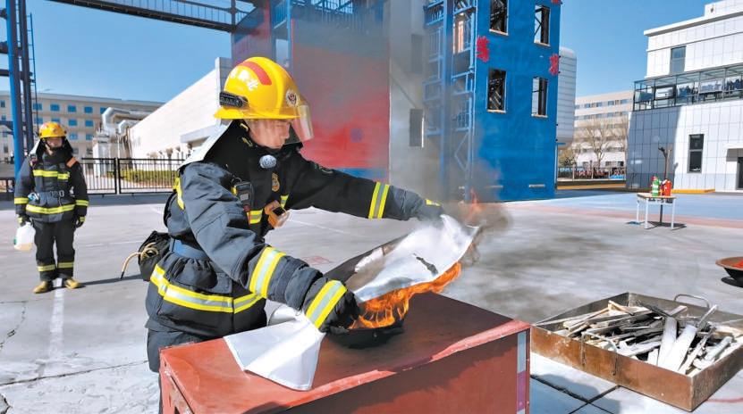 接著,消防員將合格的滅火毯覆蓋在起火油鍋上,2分鐘后,消防員撤下滅火毯,油鍋未出現(xiàn)復(fù)燃現(xiàn)象,滅火效果明顯,且滅火毯沒(méi)有燃燒。