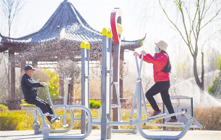 4月5日,市民在銀川毓秀公園打乒乓球。當(dāng)日,該公園迎來許多晨練市民,運(yùn)動的人們成為假日清晨的亮麗風(fēng)景。記者 馬楠 攝