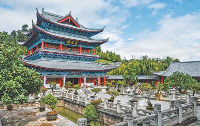 “一座土司府,半部民族史”。木府萬卷樓前的這10個(gè)字,將邊地古城各民族交往交流交融的故事娓娓道來。獅子山拱衛(wèi)、護(hù)城河縈繞,木府的選址與布局十分講究。作為麗江木氏土司府的衙署,木府始建于明代,后來歷經(jīng)多次擴(kuò)建和修繕,形成了現(xiàn)有的建筑群布局,議事廳、萬卷樓、護(hù)法殿等沿中軸線依次排開。歷經(jīng)400多年風(fēng)雨的木府,作為麗江古城的重要文化地標(biāo),聆聽著各民族百川匯流向前的歷史回響。