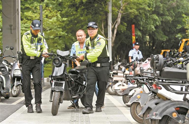 自5月26日起,廣州交警、交通、城管等多部門及屬地政府在全市重點(diǎn)地鐵站口周邊正式開展交通環(huán)境聯(lián)合整治行動(dòng),對(duì)違停且妨礙通行的車輛予以拖移,對(duì)摩電非法營運(yùn)圍堵拉客行為予以打擊,對(duì)無牌、遮擋號(hào)牌、非法改裝的電動(dòng)自行車予以查處。