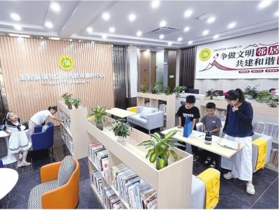 孩子們在親民化改造后的美好新城社區(qū)黨員群眾服務中心內看書、自習。長江日報記者楊榮峰攝