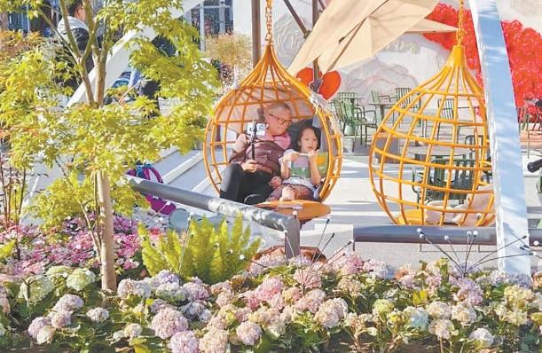 中午時分,“亮馬小院”里撐起一頂頂戶外露營傘。傘下的人有的享受著美食,有的靜靜地讀書。小院外面還有玫瑰墻、秋千,總有愛美的姑娘們來合影。