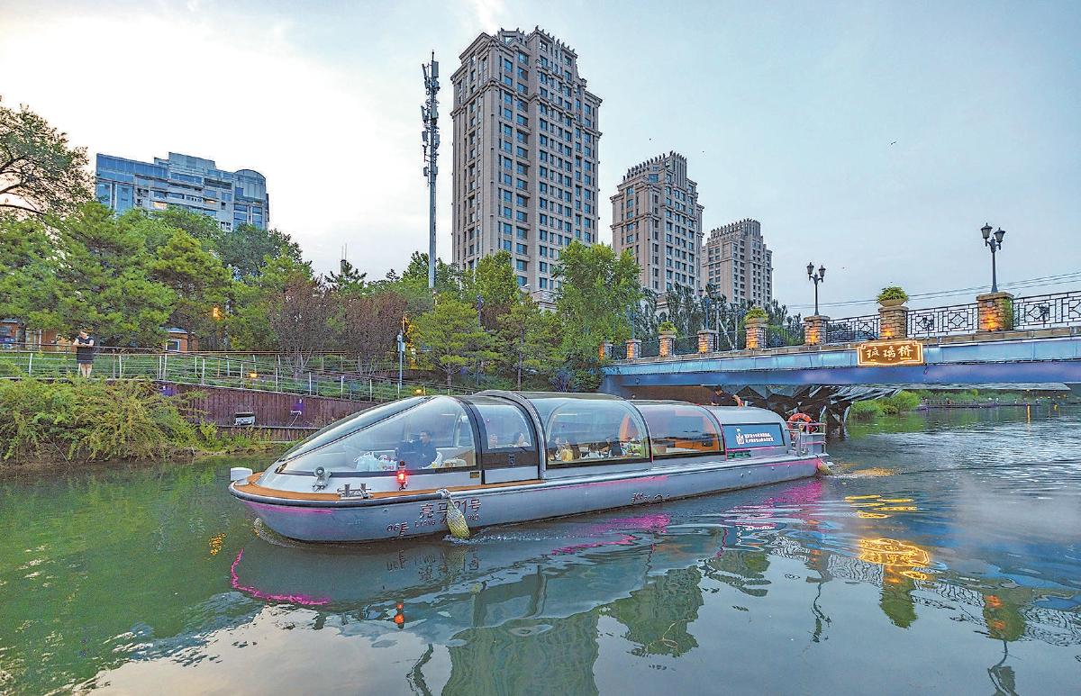 亮馬河上的游船。記者 潘之望 攝