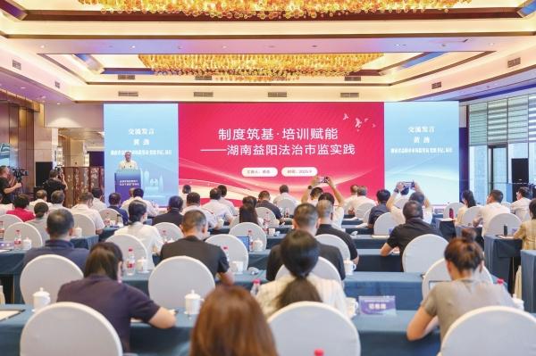 益陽市市場監(jiān)督管理局負(fù)責(zé)人在國家市場監(jiān)督管理總局“法治下基層”現(xiàn)場會上分享經(jīng)驗。(本文圖片均由益陽市市場監(jiān)督管理局提供)