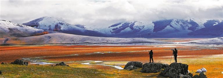 10月2日,新疆阿勒泰市托勒海特草原,雪山、河流、云海相映成景。 阿爾達(dá)克·拜斯汗攝(中經(jīng)視覺(jué))