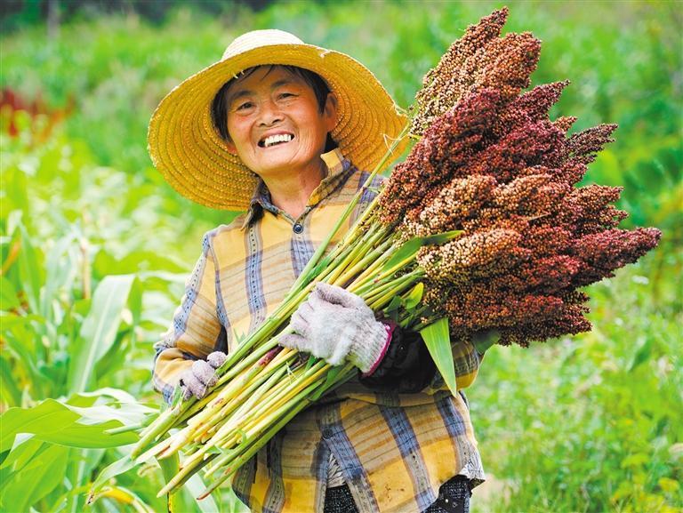 9月23日,安徽省黃山市黟縣西遞村,村民利用晴好天氣收獲高粱。 許家棟攝(中經(jīng)視覺(jué))