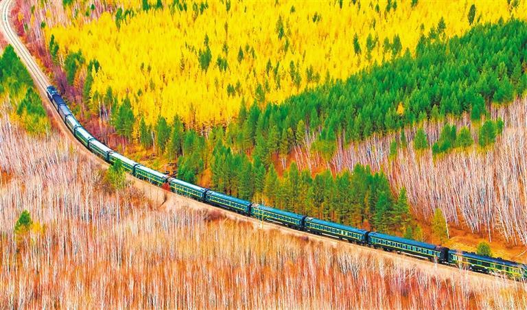 10月2日,黑龍江省大興安嶺漠河市九曲十八彎,金秋山林色彩斑斕。 孫立君攝(中經(jīng)視覺(jué))