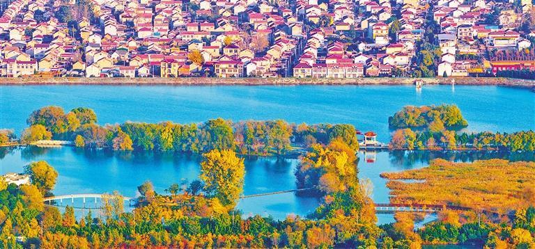 11月2日,深秋的安徽省淮北市烈山區(qū)烈山鎮(zhèn)榴園村層林盡染,金黃的石榴園與遠(yuǎn)處的村莊相映成景。張偉 攝(中經(jīng)視覺(jué))