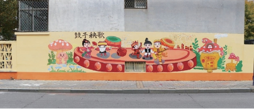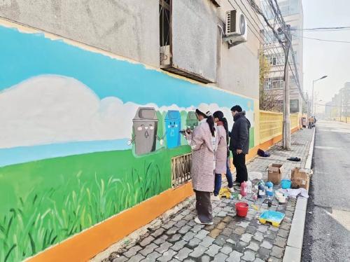 為讓墻繪作品既貼合城市文明建設要求,又貼近民生、便于傳播,雙方多次深度對接:一方面將垃圾分類、街巷環(huán)境提升等城管重點工作轉(zhuǎn)化為生動畫面,讓市民在觀賞中直觀了解城管工作;另一方面融入濟陽地標、特色農(nóng)副產(chǎn)品、鼓子秧歌等本土元素,將抽象文明理念與地域文化轉(zhuǎn)化為場景化視覺內(nèi)容,增強群眾認同感。