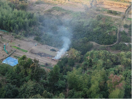 這片農(nóng)田被茂密的水杉林遮擋,是地面巡查的“盲區(qū)”。當天,章大爺點燃秸稈后,急著回家煮飯,竟忘了徹底熄滅?;鹈绯弥L勢,已躥至半米高,并悄悄向旁邊的樹林蔓延。