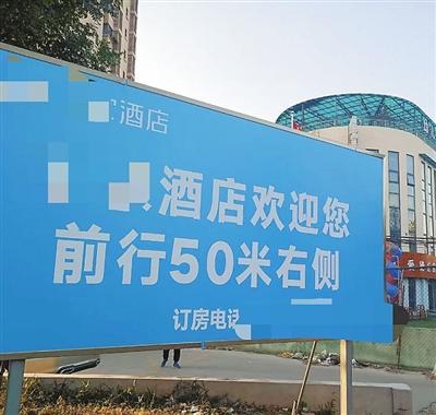 在北辰區(qū)志成路與津圍公路交會(huì)處的人行道上,一個(gè)印有“某某酒店歡迎您”的藍(lán)色廣告牌也設(shè)置在人行道上,十分顯眼。記者在東麗區(qū)津薊聯(lián)絡(luò)線徐莊村附近的路燈桿上,也看到一個(gè)印有“某某酒店”字樣的藍(lán)底白字廣告牌,在道路對(duì)面有一個(gè)印有“某某制冷配件進(jìn)口”字樣的廣告牌則設(shè)置在綠地上。