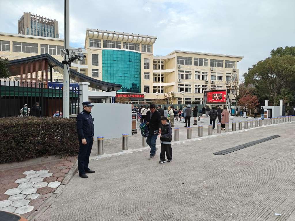 圖為在丹城第五小學(xué)外執(zhí)勤的執(zhí)法人員
