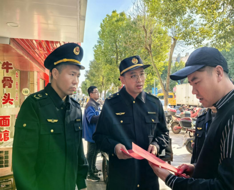 綜合行政執(zhí)法人員聯(lián)合市場監(jiān)管人員上門為新開商戶提供開店指導(dǎo)
