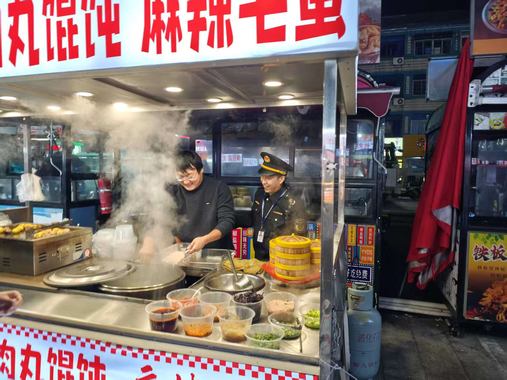 執(zhí)法隊創(chuàng)新推行“四定一退”管理機制:定區(qū)域:每個攤位界限清晰,不越線、不擴面;定時間:統(tǒng)一經(jīng)營時段(晚6時至11時),不擾民、不超時;定攤主:實名登記、人攤對應,責任到人;定標準:衛(wèi)生、安全、環(huán)保全面規(guī)范,樹立經(jīng)營標桿;退出機制:對屢次違規(guī)、整改不力的攤主實行有序退出,保持整體品質。通過公開報名、公平抽簽,15戶符合條件的攤主在此“安家”。執(zhí)法人員化身“夜間管家”,以“綜合查一次”實現(xiàn)動態(tài)服務與監(jiān)管;攤主簽訂自律承諾,第三方協(xié)同維護,形成共治共享的良好生態(tài)。如今的夜市,道路通暢、油煙規(guī)范,成為職工下班后的暖胃去處,更讓攤主們從“提心吊膽”走向“心安理得”。