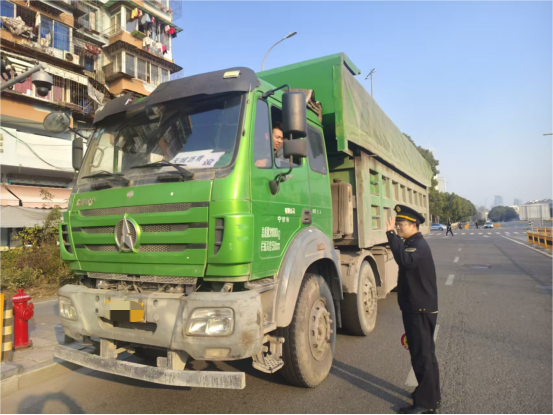 嚴格執(zhí)法提升運輸規(guī)范。始終堅持依法行政、公正文明執(zhí)法,嚴格依照相關(guān)法律法規(guī)和執(zhí)法流程開展工作。執(zhí)法人員重點檢查車輛車容車貌、證件手續(xù)、車輪帶泥等情況,并對運輸路線、時間等進行細致核驗,對潛在問題現(xiàn)場做好預警提醒,從源頭杜絕違法違規(guī)運輸行為。