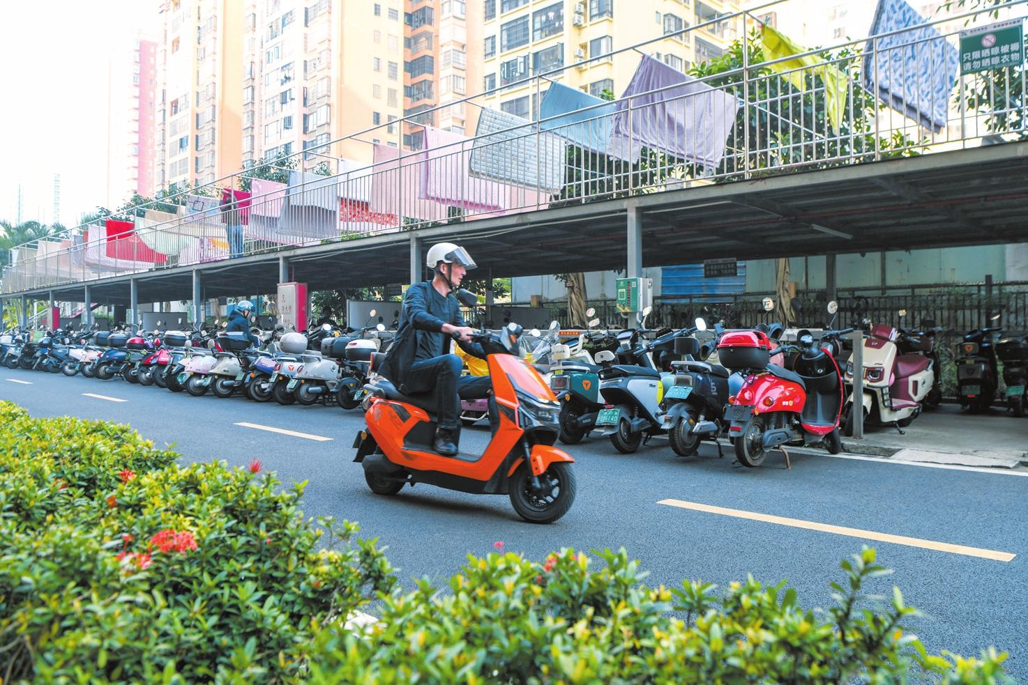 在瓊山區(qū)佳元·椰風(fēng)水韻小區(qū),物業(yè)部門為業(yè)主設(shè)置了下層停放電動自行車上層晾曬的立體車棚。記者 蘇弼坤 攝