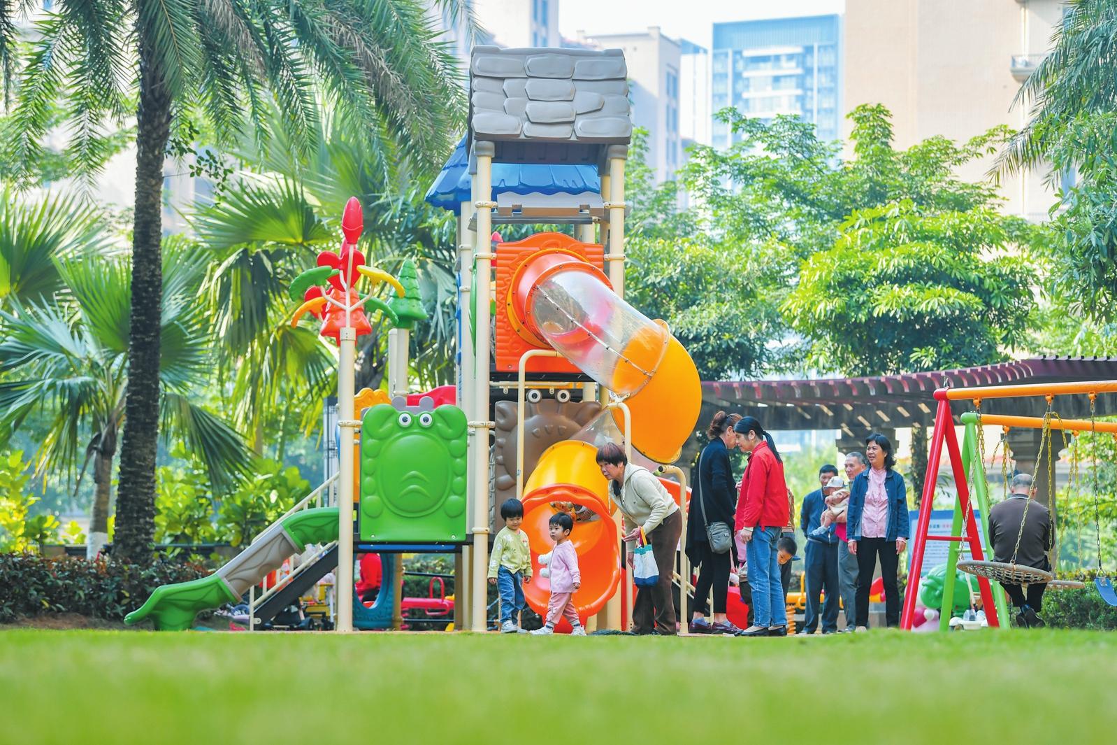 “注意腳下重心,膝蓋再彎一點!”2025年12月13日下午,在瓊山區(qū)佳元·椰風(fēng)水韻小區(qū)的空地上,孩子們在練習(xí)輪滑;一旁的兒童游樂區(qū),老人們帶著孫輩游玩,歡笑聲不斷。這樣的幸福場景,已經(jīng)成為小區(qū)的日常。