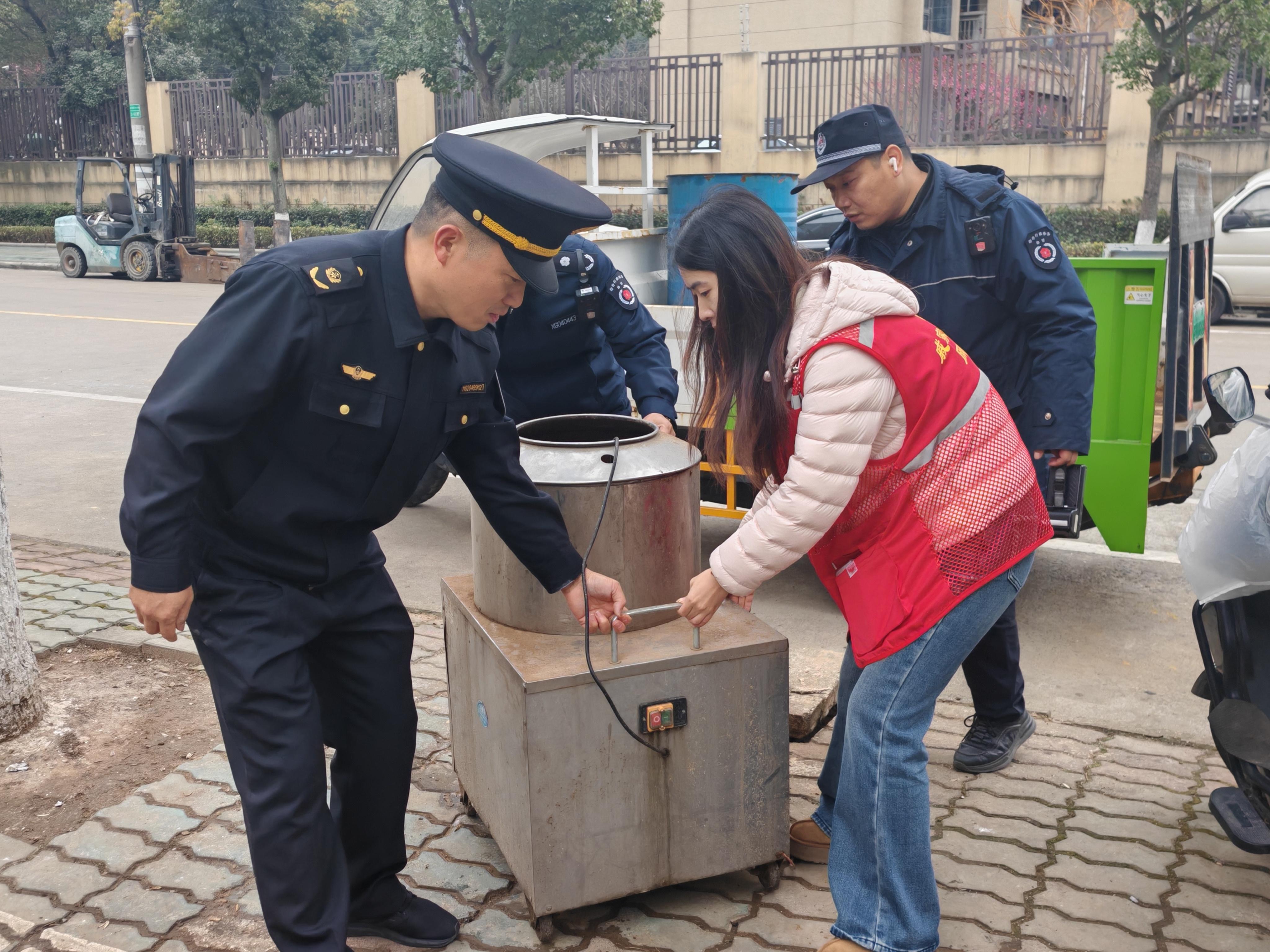 薄弱部位“大掃除”。小區(qū)退紅位置常常是亂堆放、亂停車的重災(zāi)區(qū),破壞綠化、隨地垃圾問題更是屢見不鮮,戚家山港城嘉苑小區(qū)退紅位置便有此“困擾”。由于該小區(qū)物業(yè)正在走退出程序,退紅位置的日常管理近乎停擺。為干凈清爽迎新年,中隊(duì)聯(lián)合鷹山社區(qū)提前排摸梳理問題點(diǎn)位,逐一走訪相關(guān)商戶,耐心勸導(dǎo)商戶對各自物品進(jìn)行清理,同時(shí)執(zhí)法人員與社區(qū)網(wǎng)格員、轄區(qū)志愿者一同對衛(wèi)生死角進(jìn)行徹底“大掃除”?!斑@么一打掃,看著確實(shí)舒服多了,以后我也會自覺做好‘門前三包’,共同把這份整潔保持?。 苯?jīng)營汽修店的王先生表示。